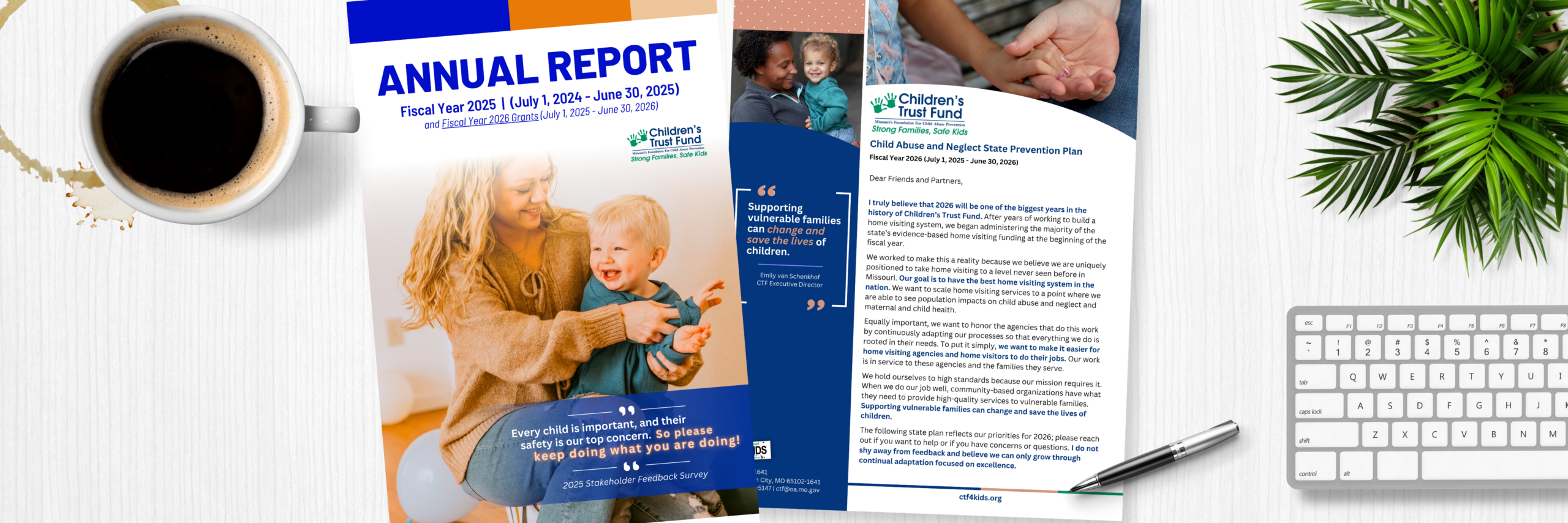 CTF is excited to present you with our Fiscal Year 2025 Annual Report, with Fiscal Year 2026 Grant Overview, and our Fiscal Year 2026 State Plan Letter. Fiscal Year 2025 was a momentous and hard year for the Children’s Trust Fund. After years of working to build a home visiting system, we began administering the majority of the state’s evidence-based home visiting funding on July 1.
